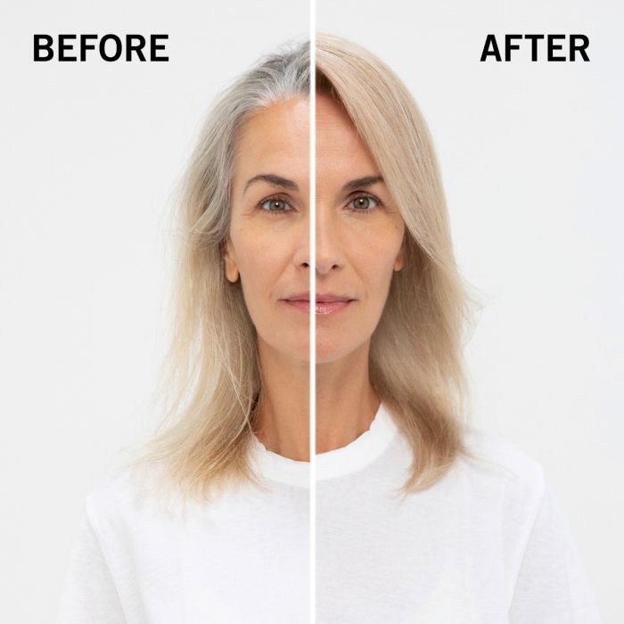 Wanneer je het product met de Blond Me Premium Developer mengt, zal het haar tot 4 niveaus gelift worden en wordt het witte haar perfect geblend op een natuurlijke basis van 6 en lichter, met 30%-70% wit haar. Het haar zal een natuurlijk ogende, blonde kleur krijgen.